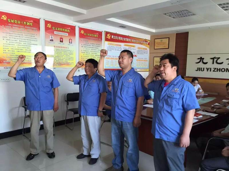 2015年7月1日:今天是中國***黨94歲的生日:洛陽九億重工集團有限公司黨支部為3名新黨員舉行入黨儀式:宣誓入黨誓詞;黨的事業后繼有人!